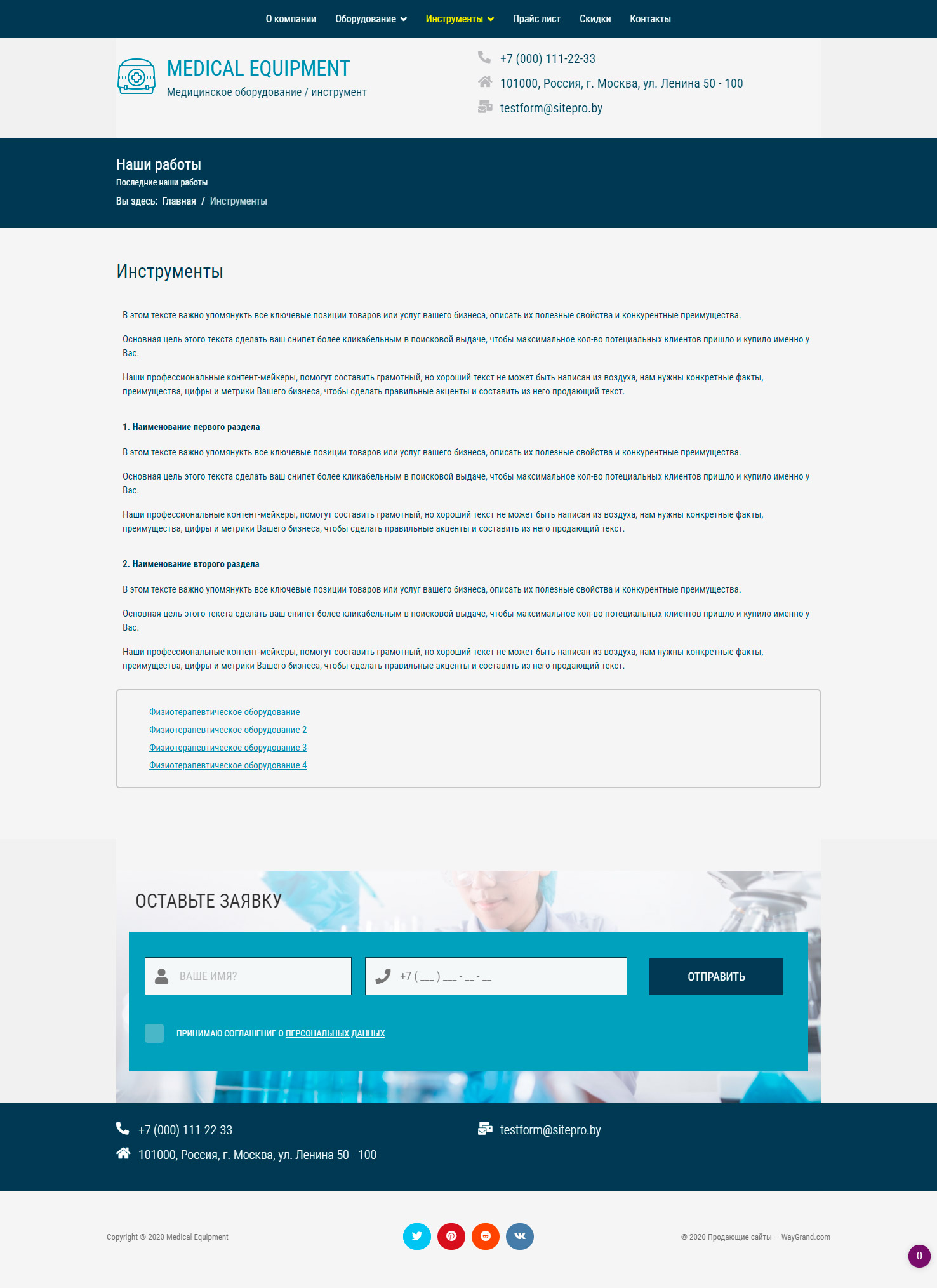 Закажите готовый продающий сайт визитка #1029301 в Шахты за 5-7 дня «под ключ»: свёрстан, отрисован и готов к рекламе. Тематика шаблона «Медицинское оборудование / инструмент».