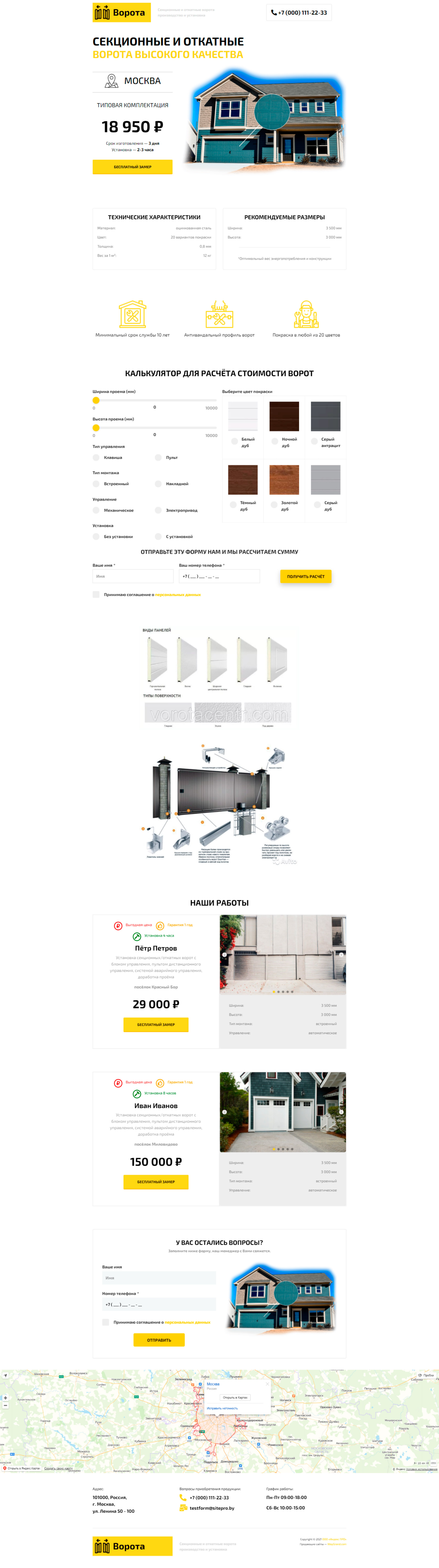 Закажите готовый продающий сайт лендинг #2001201 в Шахты за 1-3 дня «под ключ»: свёрстан, отрисован и готов к рекламе. Тематика шаблона «Секционные и откатные ворота производство и установка».