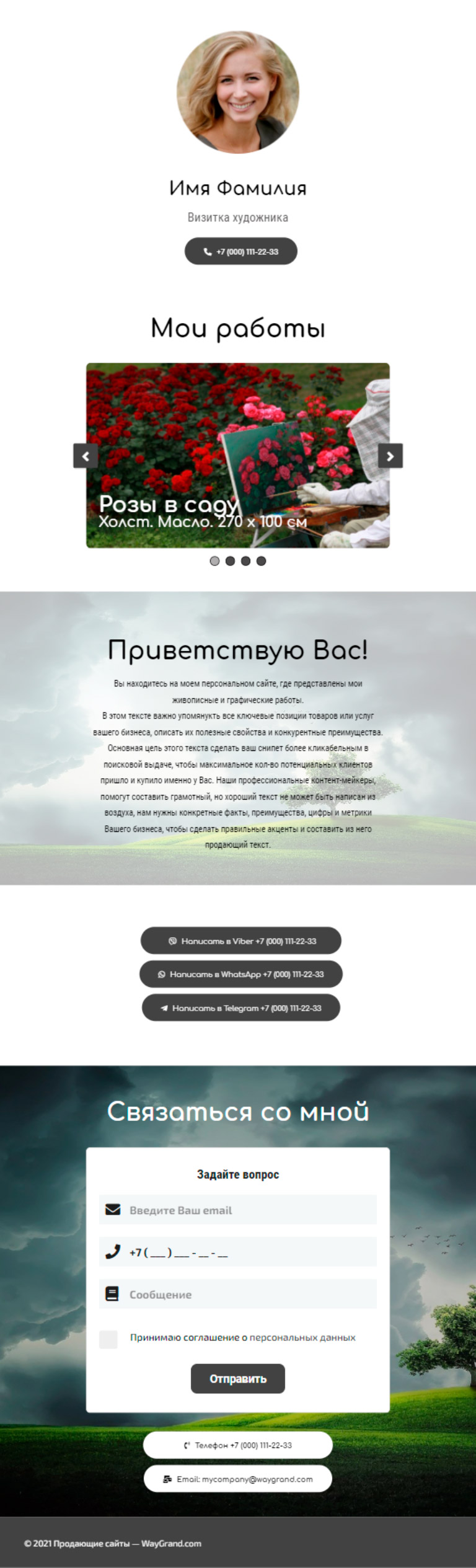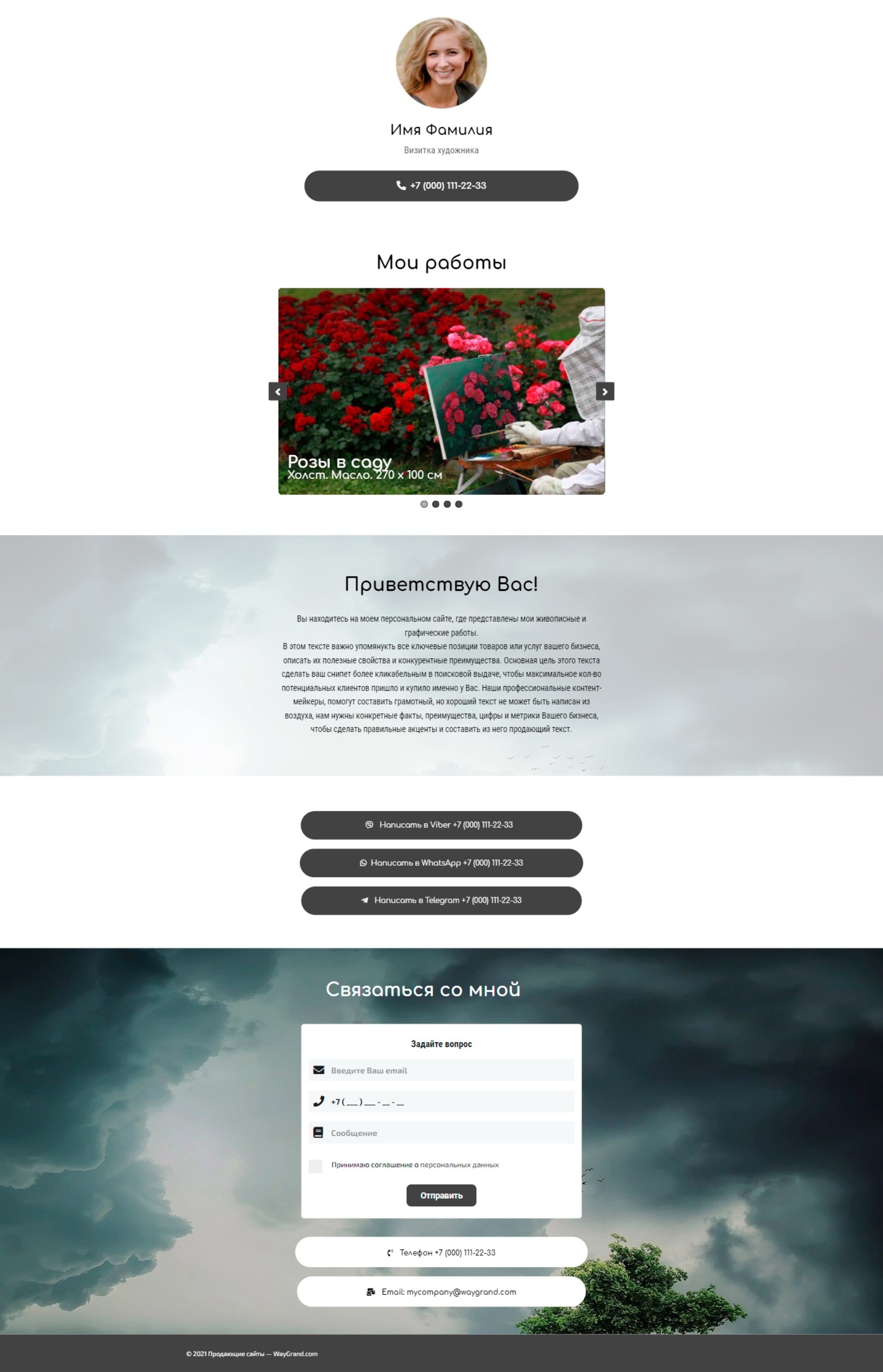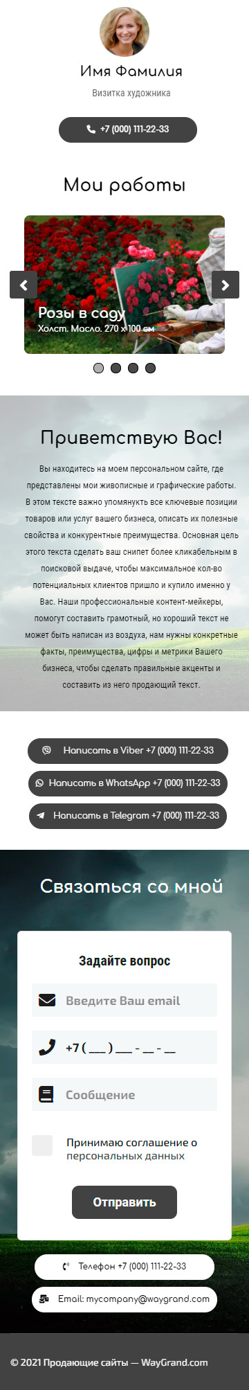 Закажите готовый продающий сайт визитка #0826101 в Шахты за 5-7 дня «под ключ»: свёрстан, отрисован и готов к рекламе. Тематика шаблона «Визитка художника».