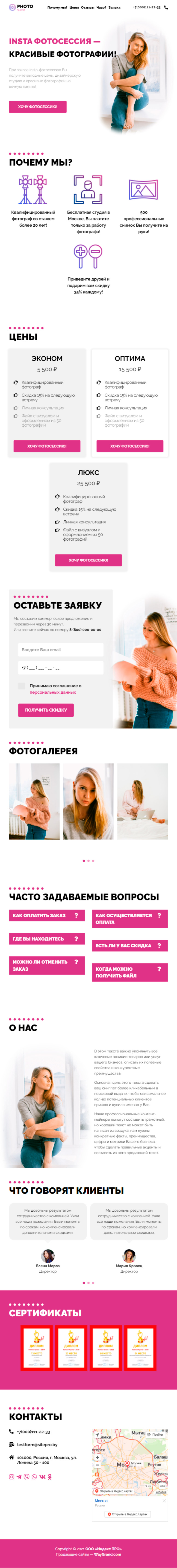 Закажите готовый продающий сайт лендинг #1853201 в Шахты за 1-3 дня «под ключ»: свёрстан, отрисован и готов к рекламе. Тематика шаблона «INSTA фотосессия — лучший подарок».