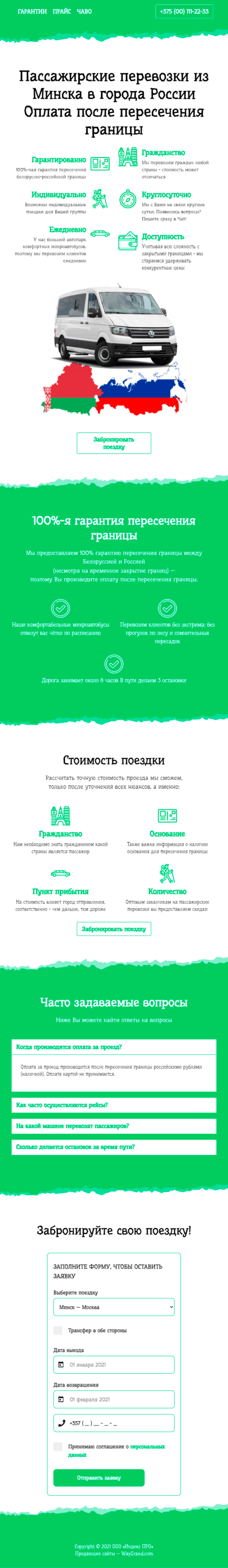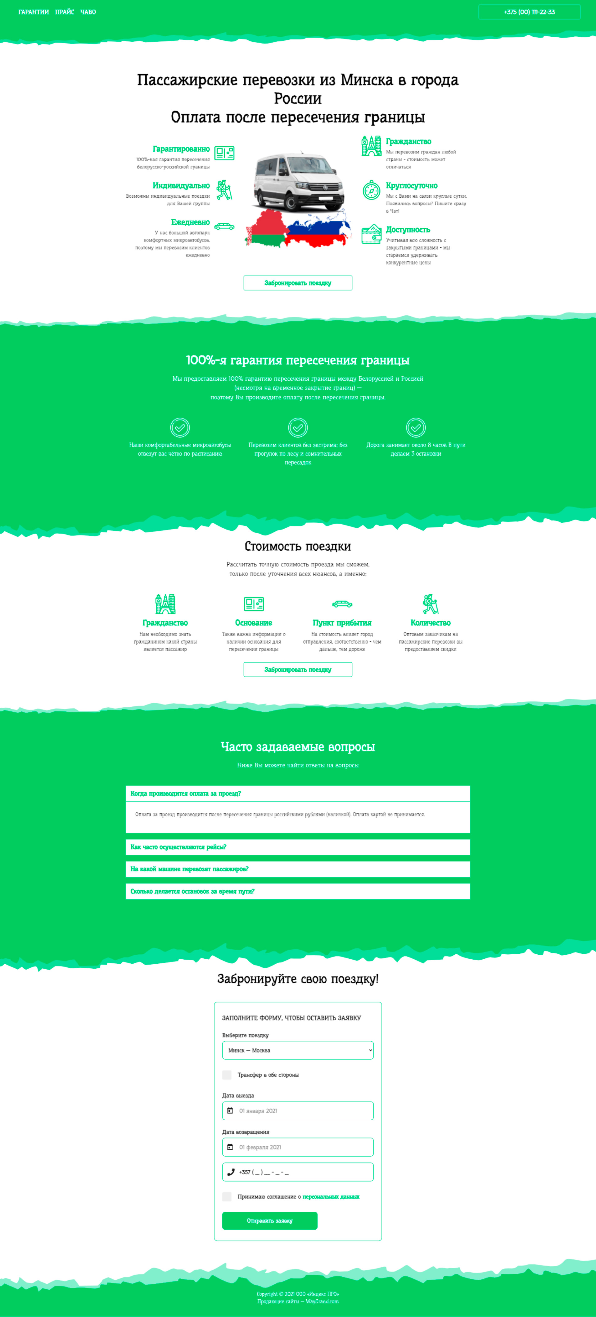 Закажите готовый продающий сайт лендинг #2528202 в Шахты за 1-3 дня «под ключ»: свёрстан, отрисован и готов к рекламе. Тематика шаблона «Пассажирские перевозки из Минска в города России».