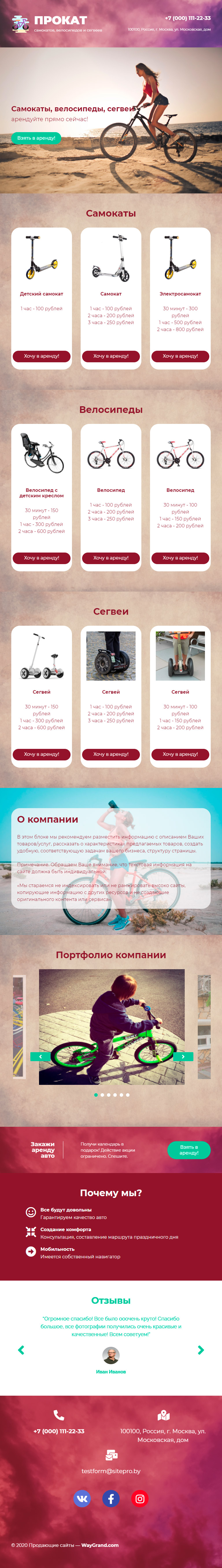 Закажите готовый продающий сайт лендинг #1907201 в Шахты за 1-3 дня «под ключ»: свёрстан, отрисован и готов к рекламе. Тематика шаблона «Прокат самокатов и велосипедов».