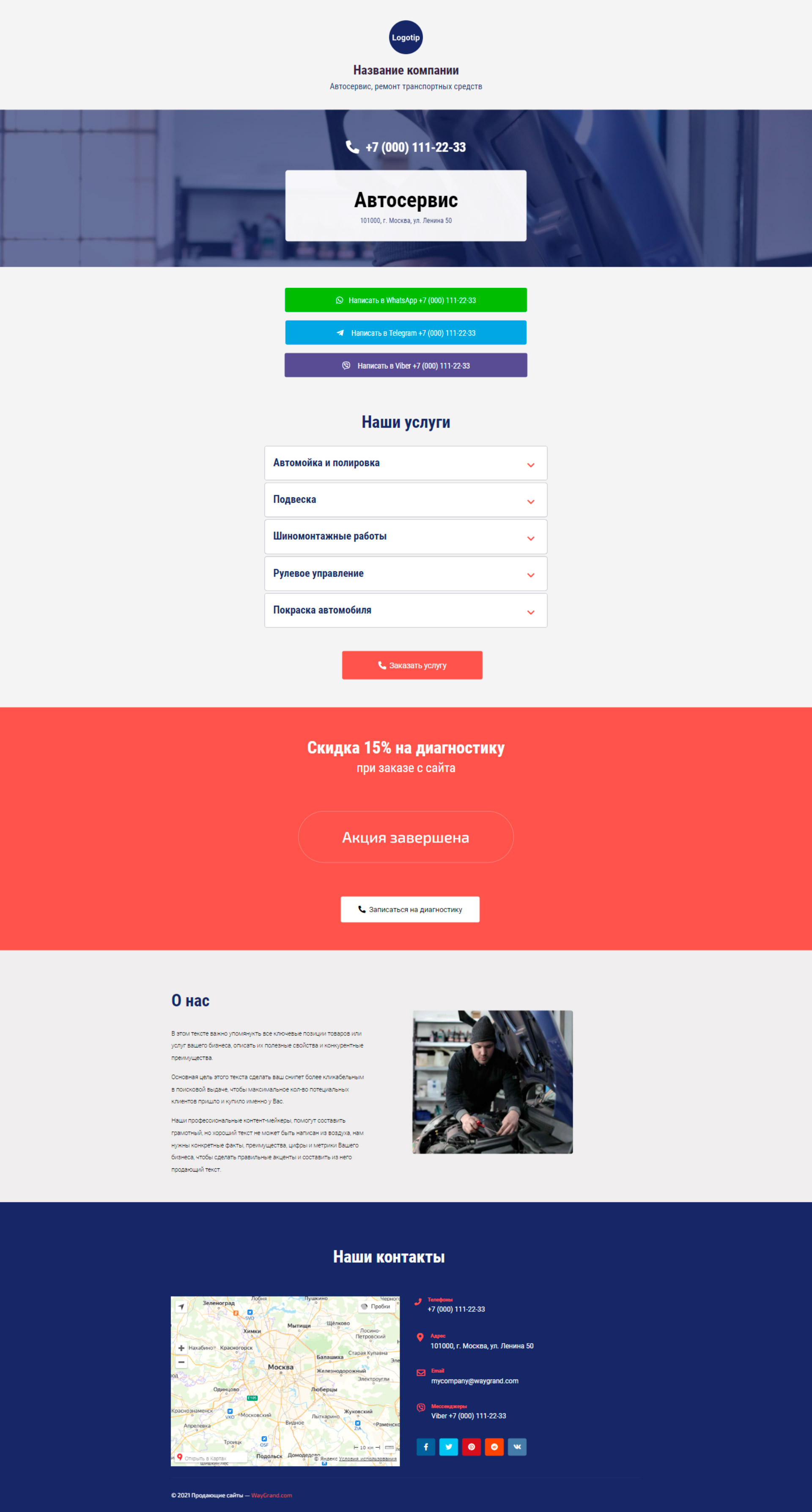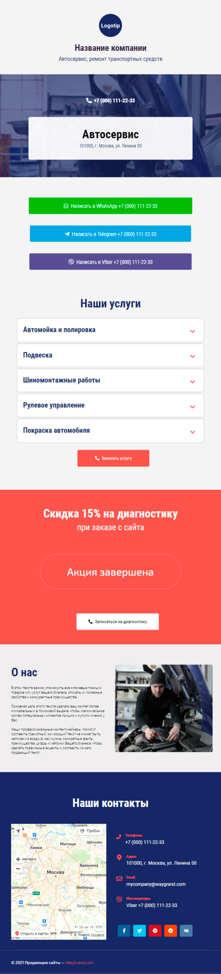 Закажите готовый продающий сайт визитка #0210101 в Шахты за 5-7 дня «под ключ»: свёрстан, отрисован и готов к рекламе. Тематика шаблона «Автосервис, ремонт транспортных средств».