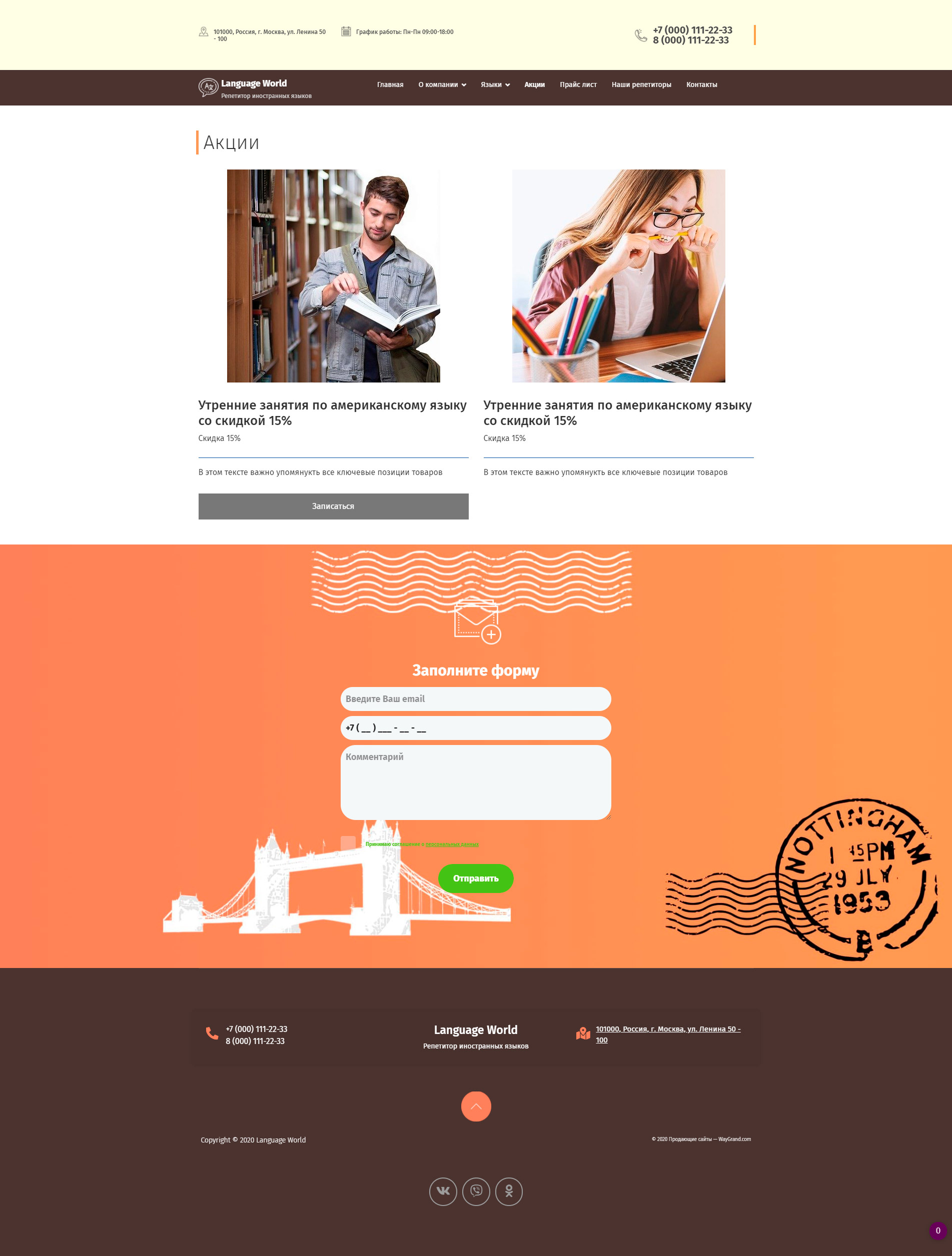 - Промогалерея "Репетиторы иностранных языков" с кнопкой призыва к действию "Записаться"
