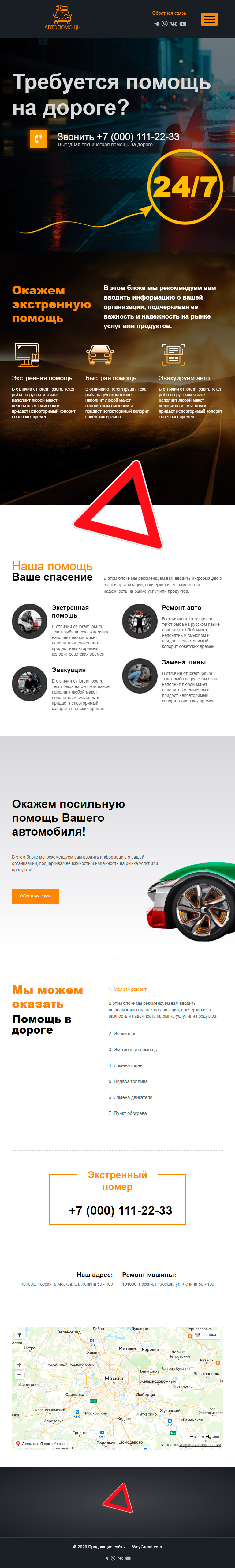 Готовый продающий сайт лендинг #0218201 в Шахты за 1-3 дня «под ключ» по доступным ценам на Waygrand: свёрстан, отрисован и готов к рекламе. Тематика шаблона «Выездная техническая помощь».