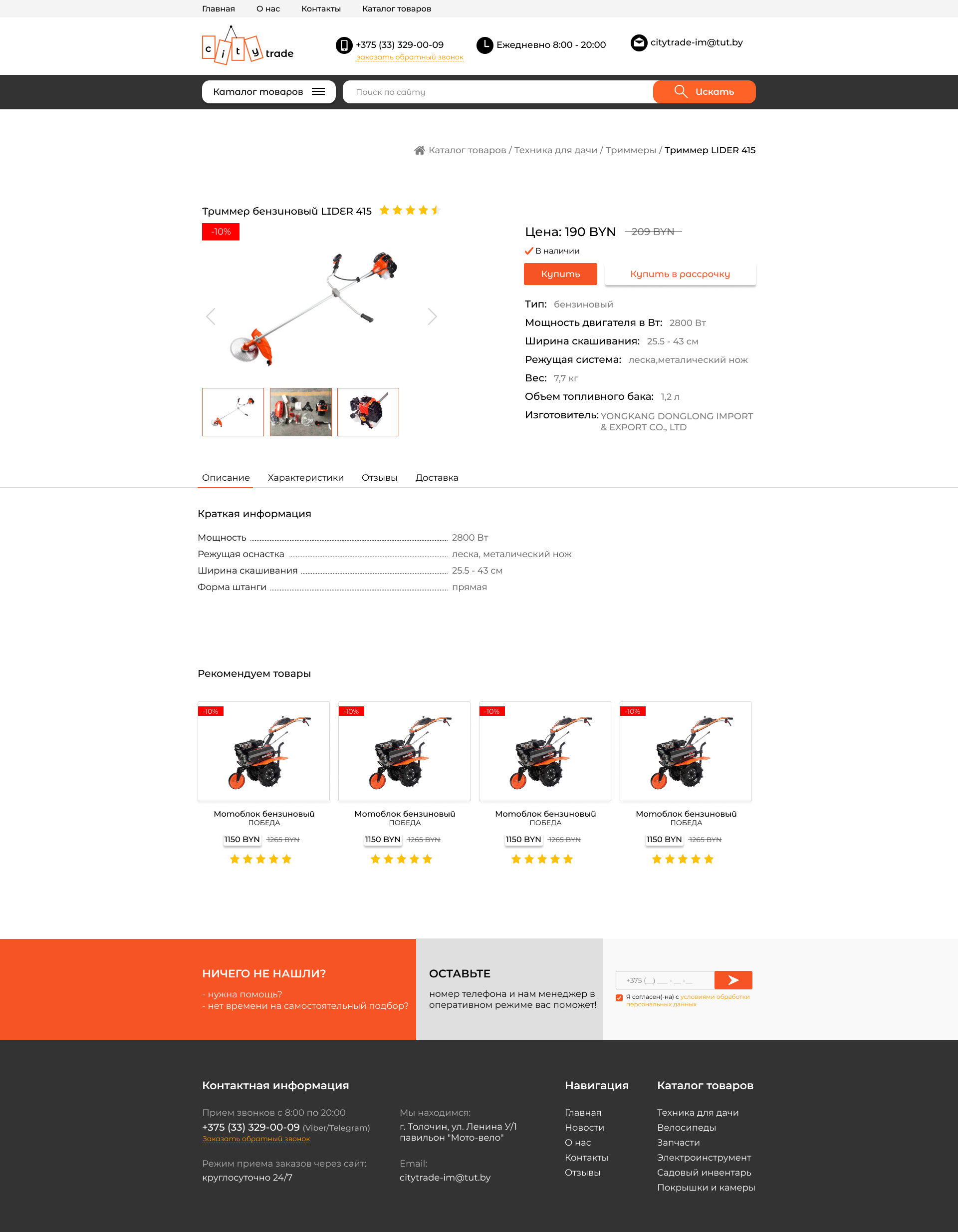 Закажите готовый продающий сайт визитка #281 в Шахты за 5-7 дня «под ключ»: свёрстан, отрисован и готов к рекламе. Тематика шаблона «Розничная продажа садовой техники, велосипедов».