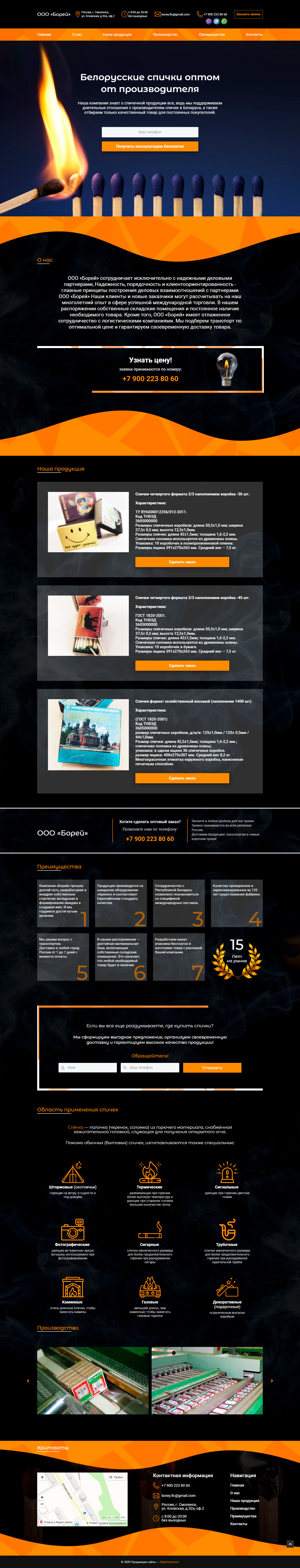 Закажите готовый продающий сайт лендинг #115 в Шахты за 1-3 дня «под ключ»: свёрстан, отрисован и готов к рекламе. Тематика шаблона «Белорусские спички оптом от производителя».