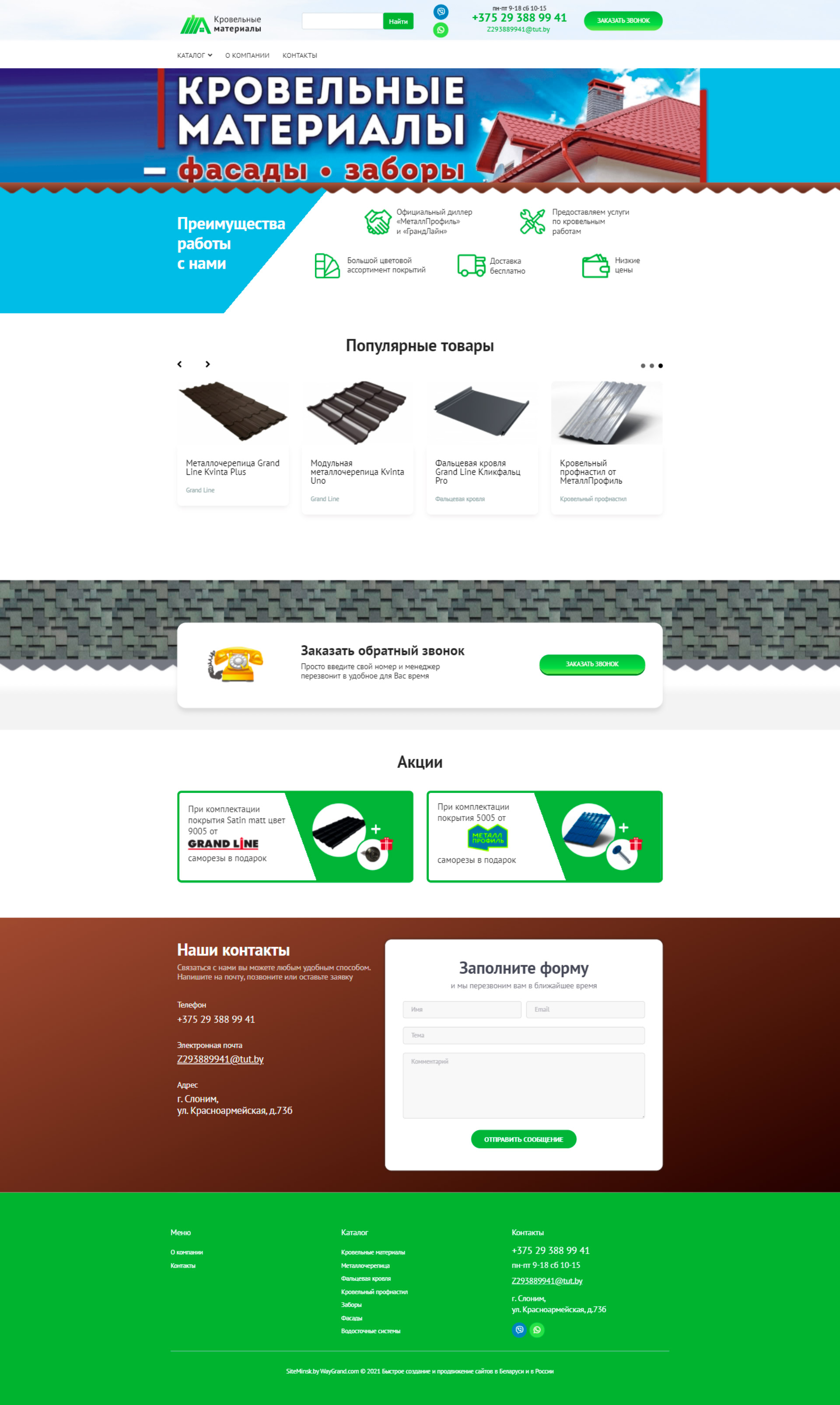 Закажите готовый продающий сайт визитка #324 в Шахты «под ключ» на waygrand по выгодной цене: свёрстан, отрисован и готов к рекламе. Тематика шаблона «Кровельные материалы».