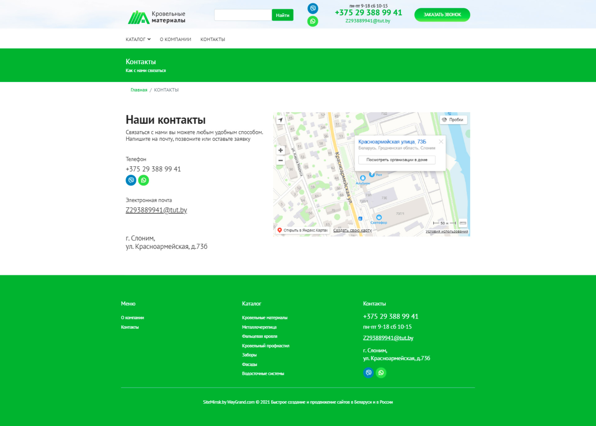 - Страница "Контакты"
