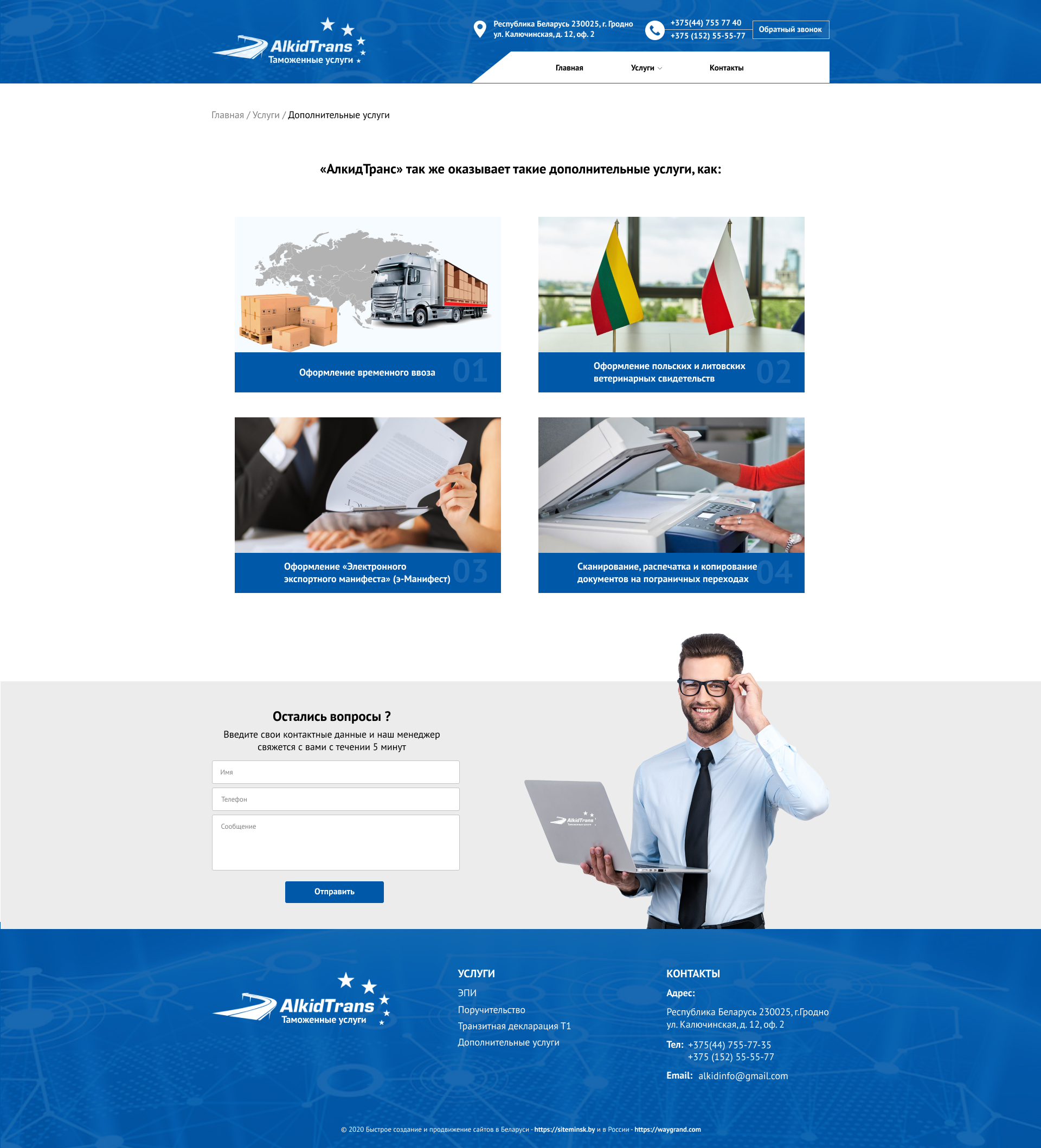 Закажите готовый продающий сайт визитка #234 в Шахты за 5-7 дня «под ключ»: свёрстан, отрисован и готов к рекламе. Тематика шаблона «Таможенные услуги».